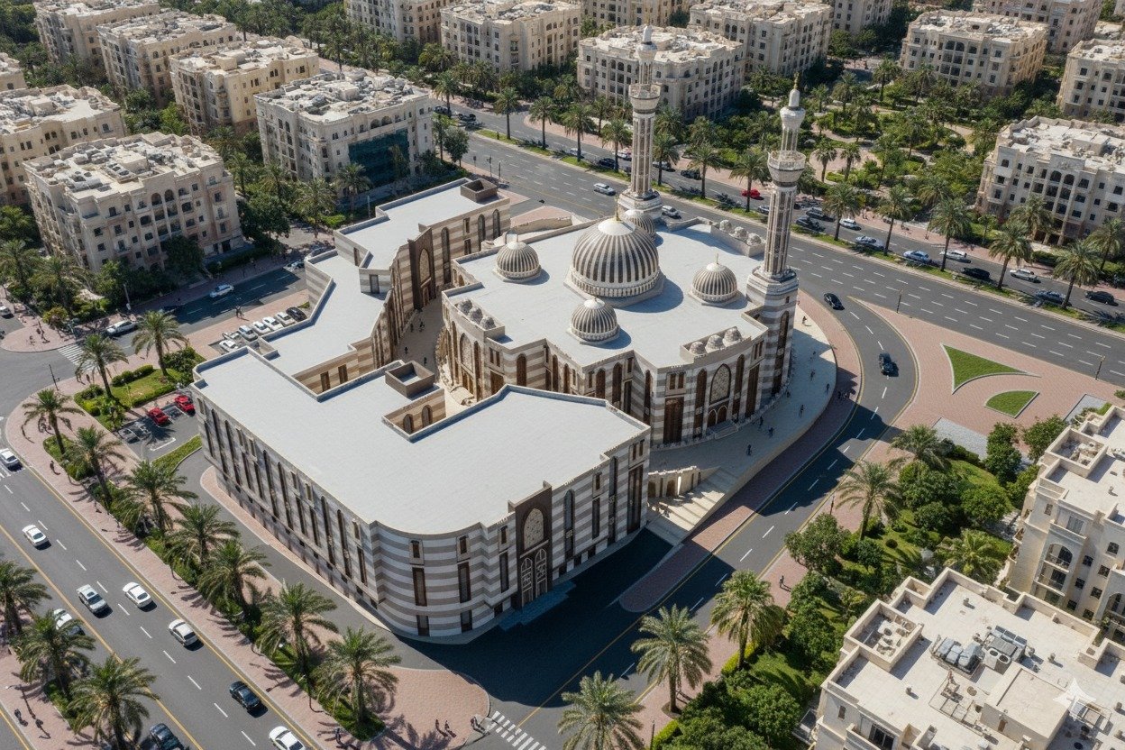 1.الريادة الروحية والفكرية: إقامة مسجد جامعٍ يكون منارةً للعبادة، ومنبعًا للعلم الشرعي النافع، ومركزًا للإشعاع الروحي والتوجيه الفكري المستنير.